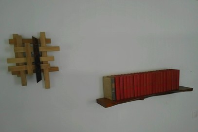 Applique murale frêne et noyer, étagère noyer. Collection personnelle.